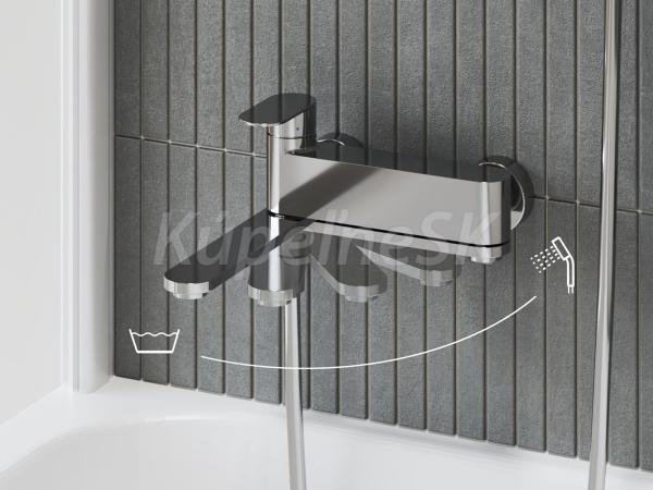 Nástenná vaňová batéria Chrome II s otočným prepínacím ramienkom, so sprchovým setom. V chrómovom vyhotovení.