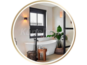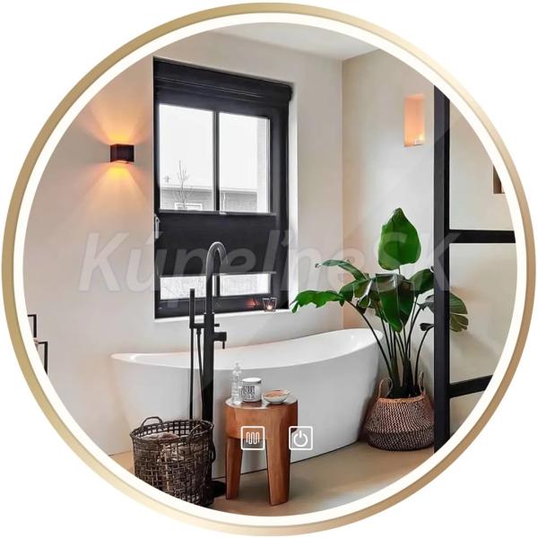 Rea LED okrúhle osvetlené zrkadlo MMJ priemer 60 cm Zlaté orámovanie HOM-02501