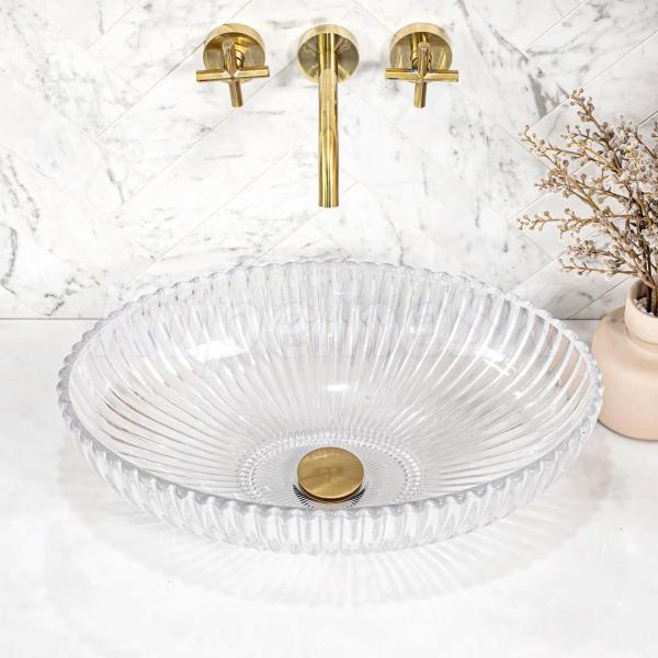 Nablatová keramická umývadlo s krištáľovým vzhľadom Nicole je dokonalou kombináciou elegancie a funkčnosti. Vyrobené z vysokokvalitného tvrdeného skla, pôsobí precíznym spracovaním a jedinečnou, ryfľovanou štruktúrou, ktorá pekne odráža svetlo, vytvárajúc efekt luxusu v každej kúpeľni. Vďaka svojmu nablatovému konštrukcii sa skvele hodí nielen na dosku, ale aj na kúpeľňovú skrinku, harmonicky ladí s modernými aj klasickými aranžmánmi. Odolnosť proti škrabancom a jednoduchá údržba robia z tohto kúsku nielen štýlový, ale aj praktický výber pre náročných používateľov.
