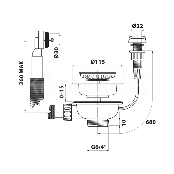 >> Obchod s inštalačným materiálom >> Sifóny - Výpuste - Vpuste >> Výpusť umývadlová >> Bruckner Nerezová výpusť drezu 6/4" s prepadom a ovládaním, nerez 155.122.1