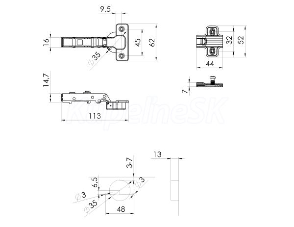 >> Kúpeľňový nábytok >> Náhradné diely >> Sapho Nábytkovy pánt s podložkou, naložený, soft close ST110D