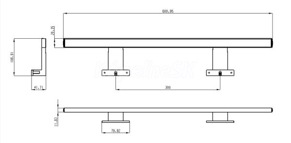Aqualine SERAPA LED nábytkové osvetlenie 600x40x100mm, 700 lm,denná biela,IP44, Čierna mat
