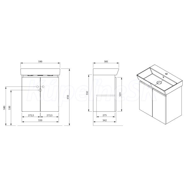 Aqualine PANEDA umývadlová skrinka 55x55x34,2cm, Biela PN255