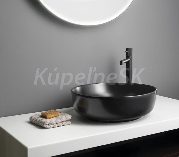 Sapho RONDEA keramické okrúhle umývadlo na dosku priemer 41 cm, Čierna matná