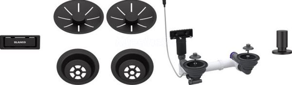 >>  KUCHYNE - Kuchynský tovar  >>  Kuchynské doplnky  >>  Blanco drezový sifón armatúra CU pre dve vaničky s tiahlom čierna matná