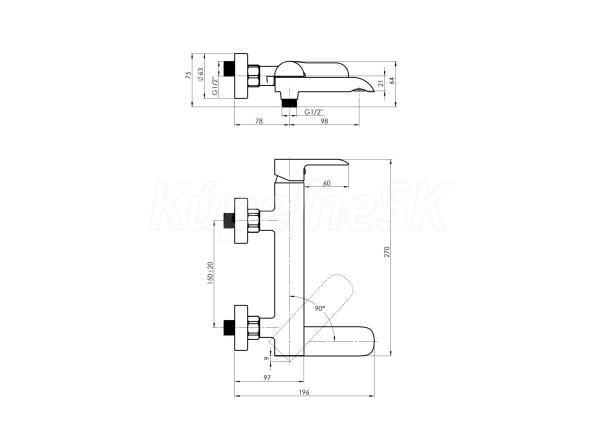 - Vaňová nástenná so sklopným výtokovým ramienkom , ktorý zároveň slúži ako prepínač