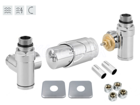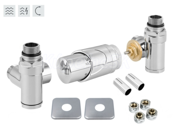 Rohová obojstranná (ľavá aj pravá) termostatická sada INTEGRATO vr. krycie rozety a 2 krycích trubičiek (mosadz) je určená na pripojenie radiátorov na rozvody TÚV s vývodom zo steny s rôznym rozstupom (krajné pripojenie). Súprava umožňuje priame osadenie elektrickej vykurovacej tyče. Nie je možné použiť pre priame napojenie zo zeme. Prívod je vždy na strane termostatickej hlavice.