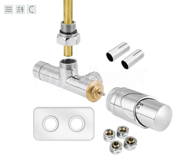 Ventil termostatická sada RDONESADAMR. vrátane krycej rozety (mosadz) je určená pre radiátory s 1-bodovým pripojením (50mm) pre teplovodné aj kombinované kúrenie.