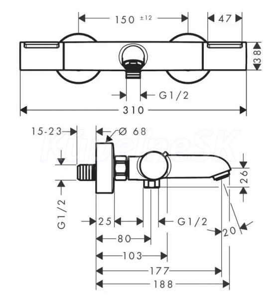Hansgrohe Ecostat Element nástenná vaňová termostatická batéria Chróm