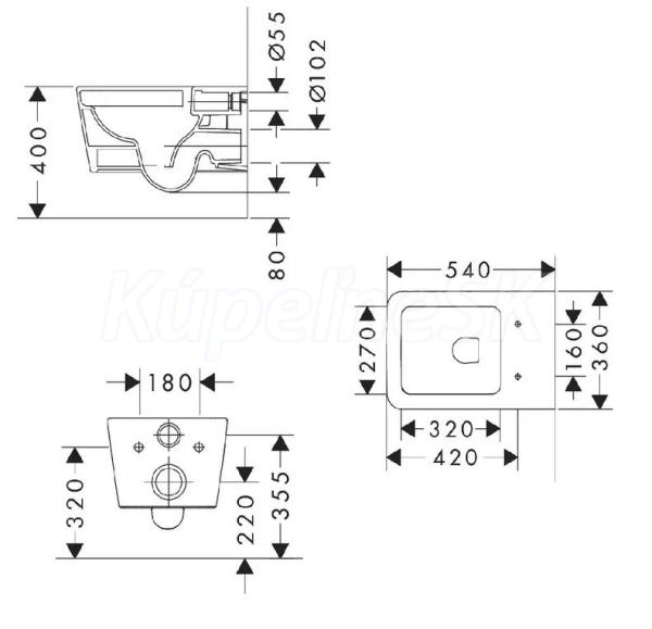 - rozteč stredov uchytenia toaletnej dosky: 160 mm
