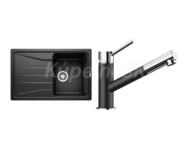 >>  KUCHYNE - Kuchynský tovar  >>  Kuchynské drezy  >>  AKCIOVÉ SETY (drez+batéria)  >>  Blanco set silgranit drez 525970 SONA 45 S čierna a batéria 526174 KANO-S čierna 525970+52