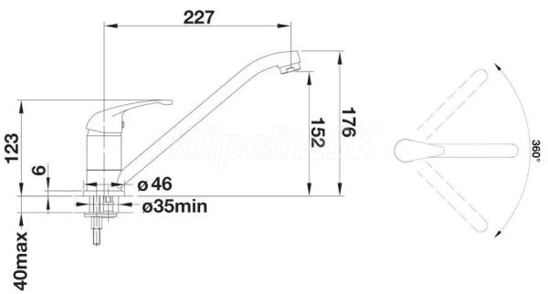 rozšírený akčný rádius: o 360° otáčateľný odtok