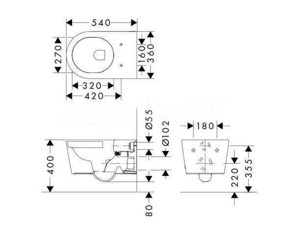 Hansgrohe EluPura S závesné WC 54x36 cm,Aquafall,SmartClean+WC sedátko SC QR Biela