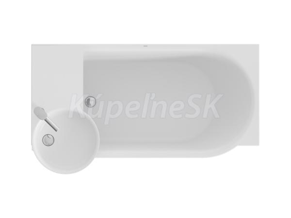 Ergonomicky tvarovaná vaňa ponúkne pohodlie aj tam, kde je miesta skutočne málo. Príjemne sa oprite, s umývadlom nad vaňou si kúpeľ vychutnáte aj v priestorovo úspornom riešení. Ľavý variant.