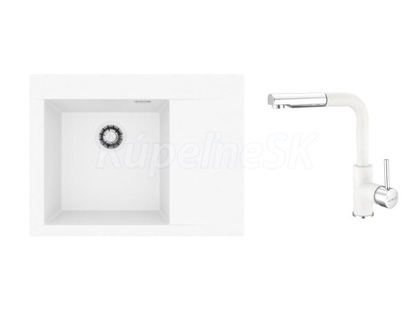 >>  KUCHYNE - Kuchynský tovar  >>  Kuchynské drezy  >>  AKCIOVÉ SETY (drez+batéria)  >>  Alveus SET granit drez Pure-G 60 so sifónom A10-Biely Ľavý a batéria Siros Biela
