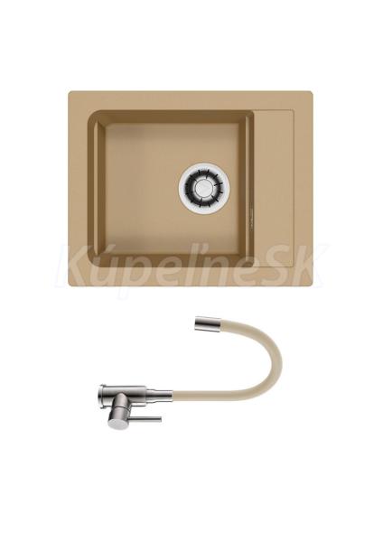 Alveus SET granit drez Atrox 10 sifón QC A50-Béžová a batéria Mintas brúsená Nerez/Béžová