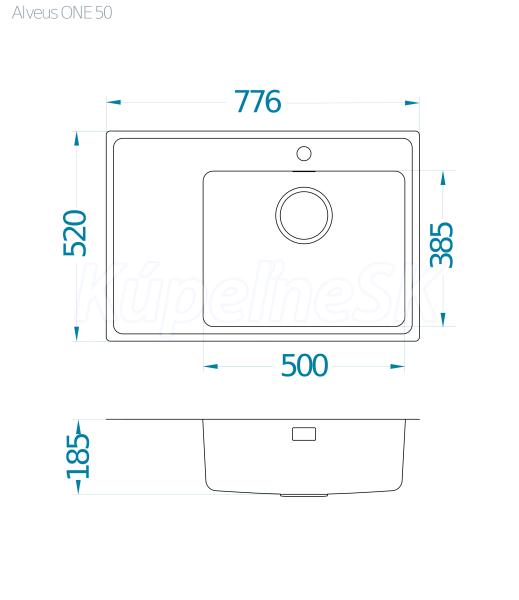 Alveus ONE 50 F/S/U nerezový drez so sifónom 776x520x190 mm odkladacia plocha BRS Pravý