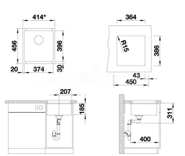 Blanco drez pod prac.dosku SUBLINE 375-U keramika PuraPlus 414x456 krištáľovo biela
