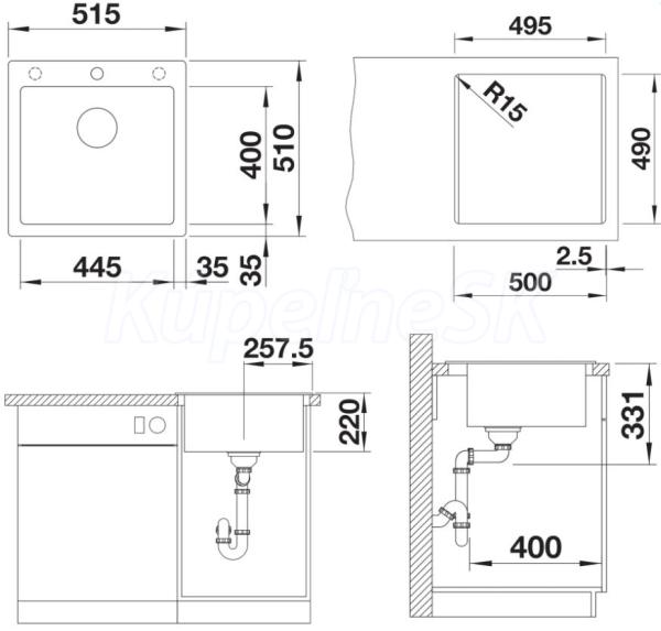 rozmer drezu 445 x 400 mm