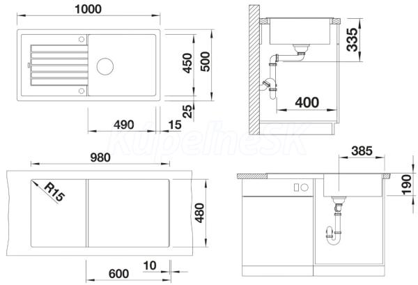Blanco vstavaný drez ZIA XL 6 S SILGRANIT 1000x500 s excentrom sivá vulkán