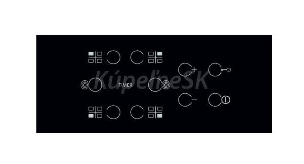 Sklokeramická varná doska, šírka 58 cm, 4 sálavé rýchlovarné platne / 2x dvojitá zóna, dotykové ovládanie, časovač, detská poistka, max. príkon: 6,3 kW, prevedenie: čierna, skosené všetky hrany
