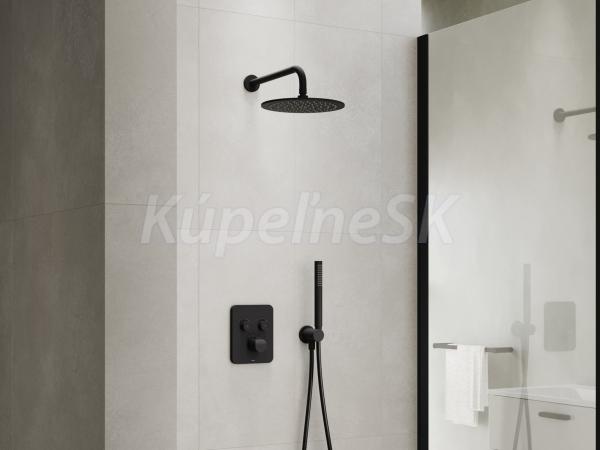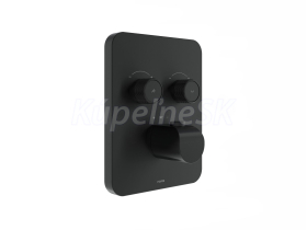 Termostatická podomietková 2-cestná vaňová/sprchová batéria Flat, určená pre R-box. V čiernom matnom vyhotovení. Nastavenie stálej teploty vody.