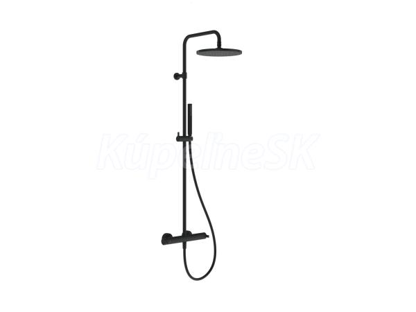 Sprchový stĺp Termo, pevný, so sprchovým setom. V čiernom matnom vyhotovení. Nastavenie stálej teploty vody.