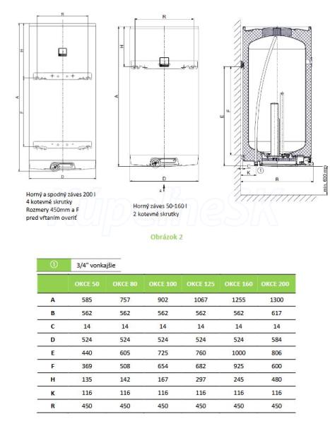 - Pre jednoduchú výmenu starších typov ohrievačov výrobca zachováva počas celej histórie - výroby vodorovné rozteče kotevných skrutiek (450 mm)