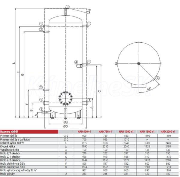 Skladovacie nádrže NAD sa vyrábajú s možnosťou použitia jednej až troch prírub. Na montáž vykurovacej jednotky s prírubou TPK možno použiť prírubu s rozstupom skrutiek 210 mm. Rozstup prírub a počet prírub je možné na požiadanie zmeniť. Príruba je štandardne zaslepená. Zásobník je vhodný ako vyrovnávacia nádrž pre vykurovacie systémy s kotlami na tuhé palivo a tepelnými čerpadlami.