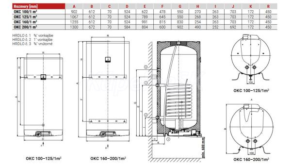 Dražice 125/1m2 OKC kombinovaný závesný zvislý zásobníkový ohrievač vody model 2016