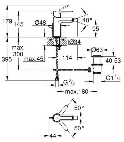 Grohe Lineare bidetová páková batéria s výpusťou Cool Sunrise 33848GL1