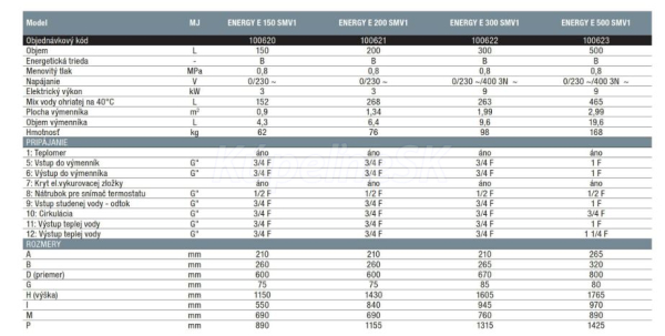 Qtermo ENERGY E 300 SMV1/0 Stacionárny kombinovaný smaltovaný ohrievač 300 L, p