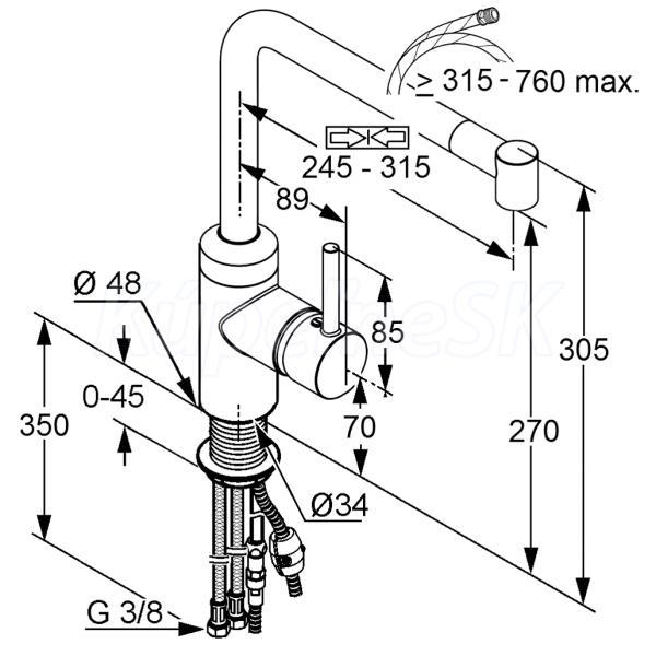 - otočný (220°), teleskopický vyťahovateľný výtok