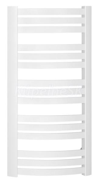 Dekoratívne kúpeľňový radiátor s jemne prehnutými plochými rúrkami s možnosťou kombinácie ústredného a elektrického vykurovania.