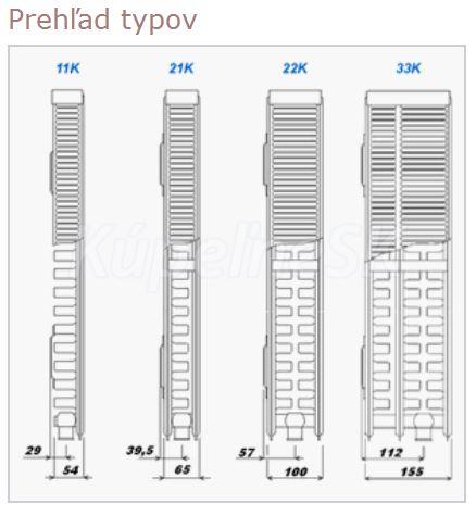 Radiátor typ Ventil-Kompakt (VK) je dodávaný so špeciálnou garnitúrou pre spodné pripojenie a ventilovou vložkou s prestaviteľnými hodnotami kv. Základný modelový rad radiátorov so 4-bodovým bočným pripojením a tvarovaným panelom s vertikálnymi kanálikmi. Súčasťou radiátora sú bočné kryty a vrchná mriežka. Od dĺžky 1700mm majú radiátory navarené 3 dvojice závesných držiakov. Povrchová úprava výrobkov KORAD pozostáva z troch základných krokov: 1.chemická predúprava - odmastenie, fosfátovanie. 2. 10 - 18 µm kataforeticky nanesená základná farba vypaľovaná v peci pri teplote 140°C po dobu 40 minút , 3. 60 - 80 µm elektrostaticky nanesená prášková farba vypaľovaná v peci pri teplote 180°C po dobu 20 minút.Panel radiátora je zvarený z dvoch výliskov, po obvode švovým zvarom. Panelové radiátory KORAD sú učené do vykurovaných priestorov s nízkou relatívnou vlhkosťou (30 - 60%) byty, kancelárie, školy, hotely, obchody, múzeá a pod. Panelové radiátory je najvhodnejšie situovať min. 140 mm pod okenný parapet do zvislej osi okna vo výške min. 70 mm od podlahy. Montáž radiátorov doporučujeme vykonávaťť v zabalenom stave, čím sa zabezpeeí maximálna ochrana radiátorov až do ukončenia všetkých stavebných prác. Na čistenie radiátora je možné použiť čistiace prostriedky určené na čistenie lakovaných povrchov. Nepoužívajte abrazívne čistiace prostriedky ani prostriedky obsahujúce chlór a kyseliny. ZÁRUKA 10 rokov.