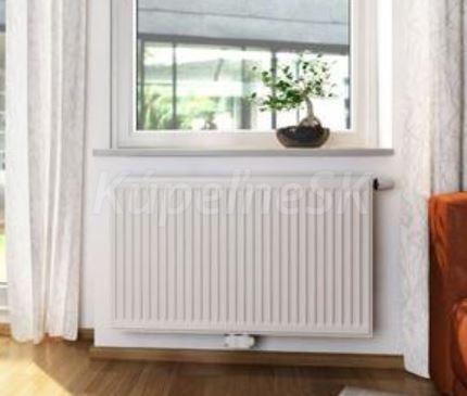 Radiátor typ Ventil-Kompakt (VK) je dodávaný so špeciálnou garnitúrou pre spodné pripojenie a ventilovou vložkou s prestaviteľnými hodnotami kv. Výkon: 1416 W