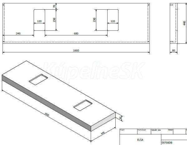 >> Kúpeľňový nábytok >> Umývadlové nábytk. dosky a pulty >> Sapho ELSA- doska 160 x 44 cm, 2 otvory, dub tmavý 59708DB