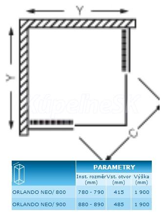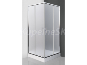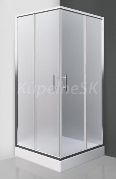 Sanipro ORLANDO NEO 80×80cm štvorcový rohový sprchový kút, dvojkrídlové posuvné dvere, 4mm matné bezpečnostné sklo, profil Brillant - leštený hliník.