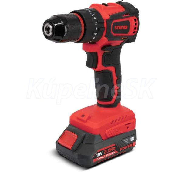 STAYER Aku vŕtačka PBL 45 L2022 K, 18V, bezuhlíková, 2Ah, 2 batérie 2Ah, kufrík