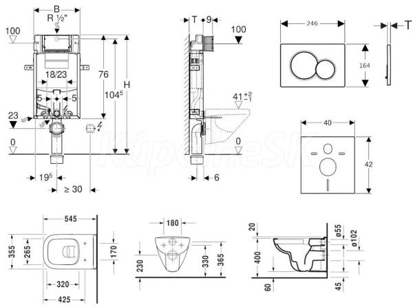 - predstenový inštalačný modul Geberit Kombifix (110.302.00.5), so splachovacou nádržkou pod omietku Sigma 12 cm