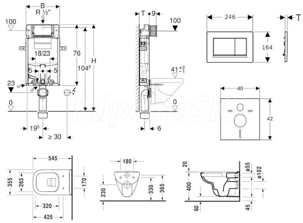 - predstenový inštalačný modul Geberit Kombifix (110.302.00.5), so splachovacou nádržkou pod omietku Sigma 12 cm