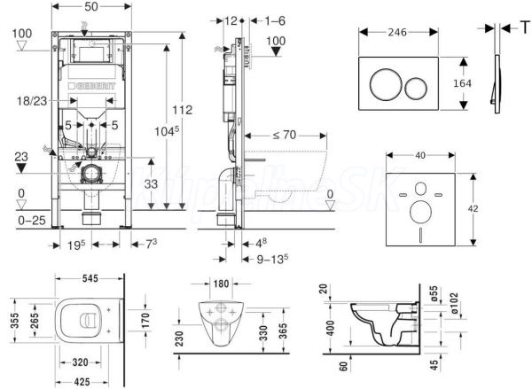 - predstenový inštalačný modul Geberit Duofix (111.300.00.5), sa splachovacou nádržkou pod omietku Sigma 12 cm