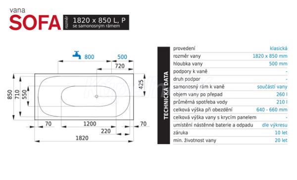Obdĺžniková vaňa Sofa sa vyznačuje úplne mimoriadnym av ponuke na slovenskom trhu ojedinelým dizajnom. Tento vydarený model je dôkazom skutočnosti, že aj na klasickom obdĺžnikovom pôdoryse vane je stále priestor pre originálne nápady. Táto obdĺžniková vaňa dodá Vašej kúpeľni eleganciu a originálnosť.