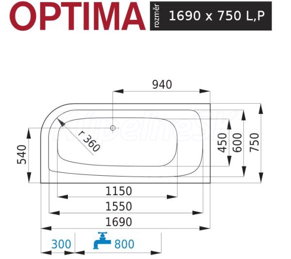 >>  Hydromasážne vane-boxy-panely  >>  Hydromasážne vane - systémy  >>  Santech OPTIMA asymetrická masážna vaňa 169x75 P Body 200 +autom.dohrievanie vody ZADARMO