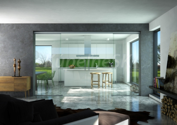Kovanie v prevedení brúsený hliník pre posuvné jednokrídlové aj dvojkrídlové dvere s úchytmi skla skrytými v koľajnici. Je určené pre sklenené aj drevené dvere.