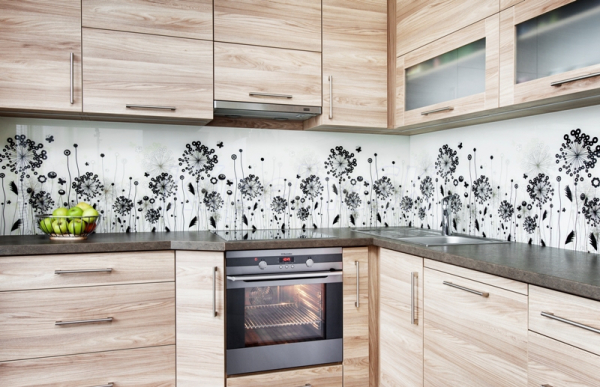 Celosklenené obklady do kuchyne môžu v sebe niesť akýkoľvek motív alebo fotografiu.