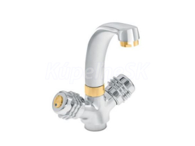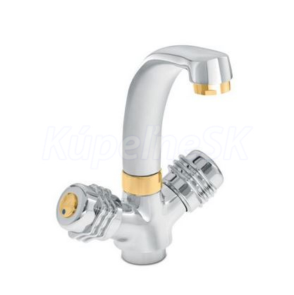 HERZ Umývadlová zmiešavacia zmiešavacia batéria VAL s hornou časťou sifónu 5/4", sifónom a rohovými ventilmi, chróm - zlatá