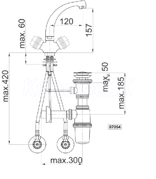 HERZ VAL Umývadlová zmiešavacia batéria s hornou časťou sifónu 5/4", sifónom a rohovými ve