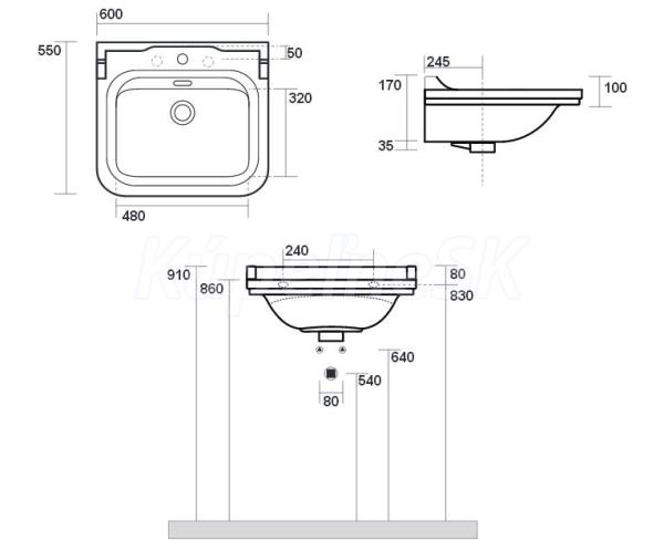 Kerasan WALDORF keramické umývadlo 60x55cm