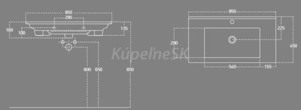 ZnačkaAQUALINE 3D modelÁNO Rozmer85x45 cm Šírka850. mm Hĺbka450. mm FarbaBiela MateriálKe